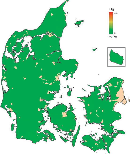 koncentrationen meget lav. Samtidig lå indholdet af kviksølv