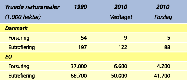 Arealer med skove, søer og andre naturområder i EU udgør i alt ca. 120 mio. hektar. Implementering af allerede vedtagne initiativer vil nedbringe det samlede areal der er truet af forsuring i EU-området fra 37 mio. hektar i 1990 til 7 mio. hektar i 2010. Tilsvarende vil de arealer der er truet af eutrofiering blive reduceret fra 67 til 50 mio. hektar. En vedtagelse af det nye direktivforslag vil betyde at EU-landene skal investere et stort milliardbeløb for at komme videre med at begrænse luftforureningen. Der vil blive sat ind mod både forsuring, effekter af ozon og eutrofiering. En gennemførelse af direktivforslaget vil medføre en yderligere beskyttelse af 2,4 mio. hektar mod forsuring og 8,3 mio. hektar mod eutrofiering - til sammenligning er Danmarks areal 4,3 mio. hektar.
